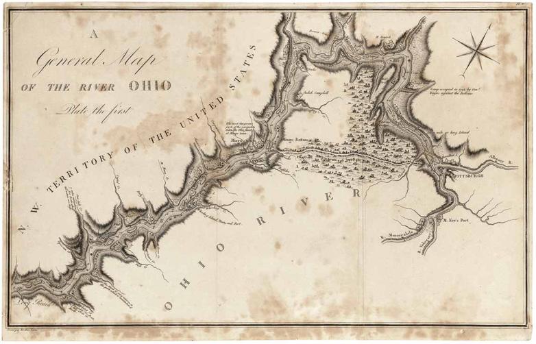 A showcase item at the Aug. 28 sale is a rare set of engravings of French explorer George Henri Victor Collot’s General Map of the River Ohio, one of the “most important and exceedingly rare American cartographic works of the 18th Century,” according to Potter & Potter Auctions. In 1796, Collot was employed by the French Minister to the U.S. to explore the Ohio River and survey the Spanish and American frontier which lay on respective sides of the river, to see if either could be retaken by France. The work he produced was some of the most detailed cartography of the region during that time period.