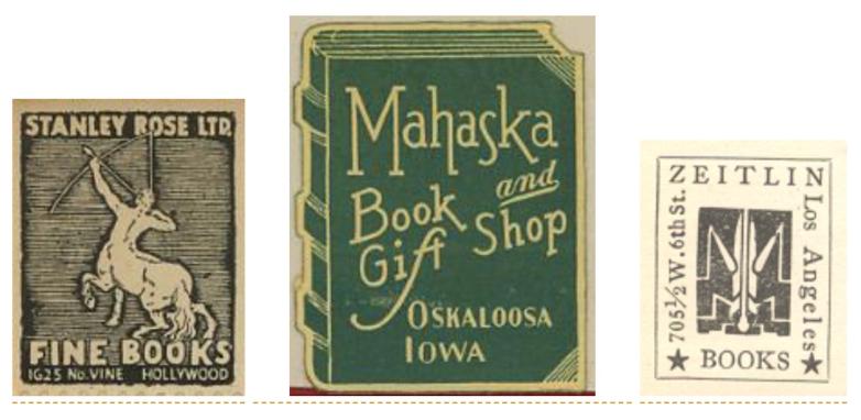 Howard Prouty, of ReadInk Books, has been collecting vintage booksellers' labels for many years and has put together quite a lovely assemblage on the ReadInk Books website, where he writes: