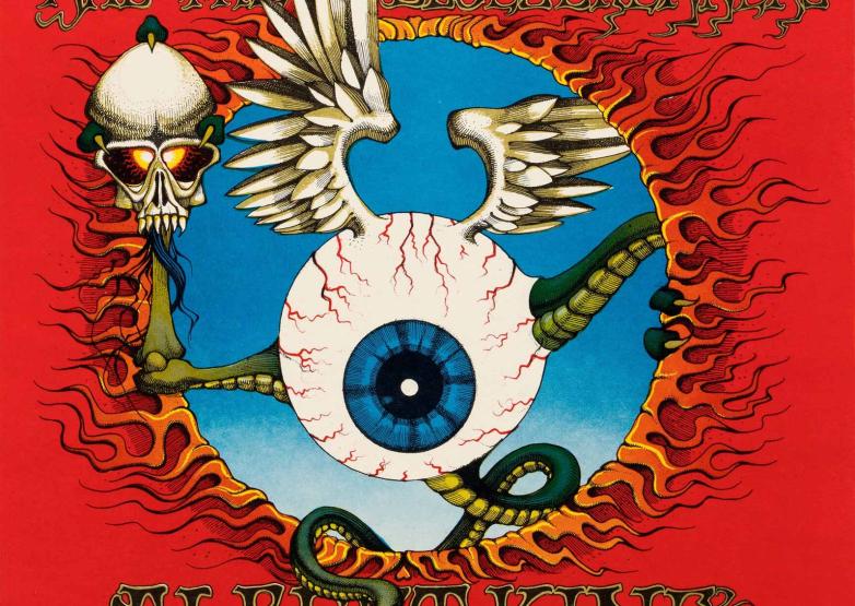 * the famed "Flying Eyeball" designed for Hendrix by psychedelic master Rick Griffin, known as BG-105 in the Bill Graham numbered series and signed in gold pen by the late Griffin