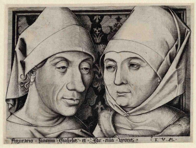 Israhel van Meckenem (German, 1440/1444-1503), Double Portrait of Israhel van Meckenem