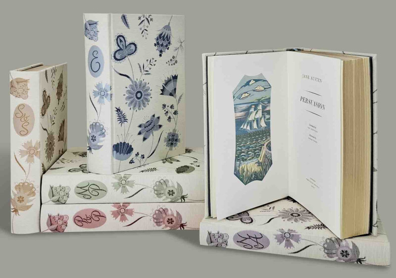 A new limited edition of all six of Jane Austen’s major novels is published tomorrow by The Folio Society, encased in woven silk-and-cotton covers with original illustrations by Sarah Young.