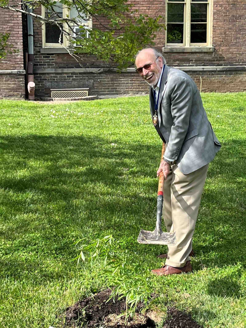 Robert DeMaria Jr, Professor of English at Vassar College and scholar on the life and works of Samuel Johnson, plants a cutting.