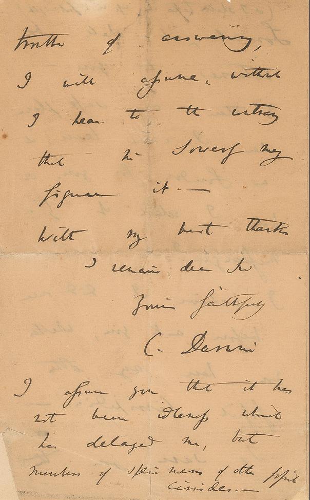 Charles Darwin letter requesting a sketch of a barnacle fossil.
