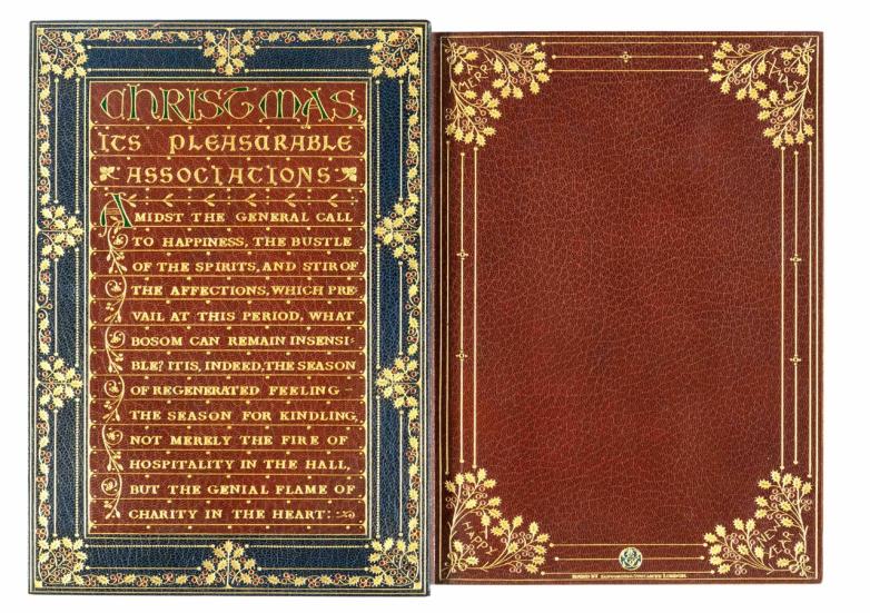An extra yuletide treat on show is the world’s first printed Christmas card and its proof copy from 1843, and—apropos to Fine Books readers—various copies of classic titles such as Pride and Prejudice in 1890s editions magnificently bound specially to be given as gifts to the wives of workers at antiquarian booksellers Maggs Bros.