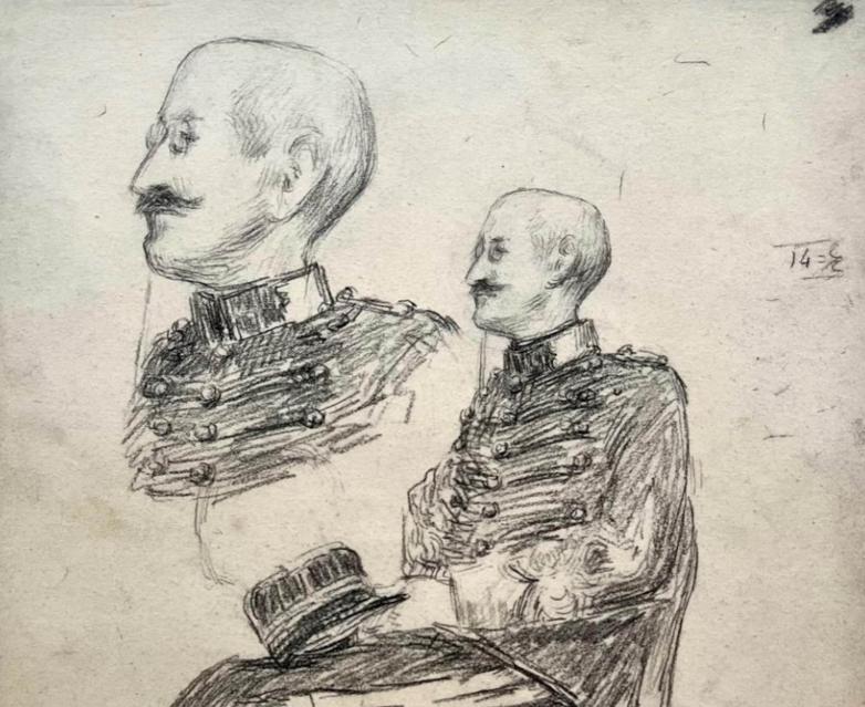 * Unpublished Rennes Courtroom Sketch of the Leading Four Anti-Dreyfus French Generals Who Lied and Fabricated Evidence Against Dreyfus