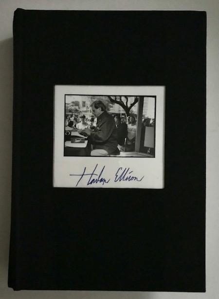 A signed, numbered “window” edition of 100, bound in black Japanese silk with a silver gel print of Harlan writing in a bookstore window and his handwritten signature under UV glass, is available for $750. The most deluxe version is signed and lettered, of which only nineteen are for public sale at $1,500, is bound in red Japanese silk, each with a different silver gel print and Harlan’s signature embedded in the window.
