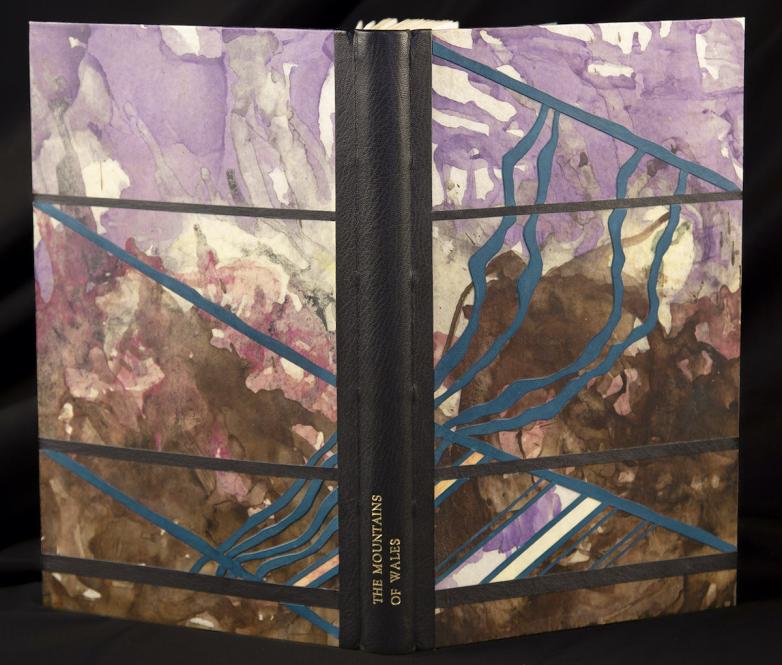 The exhibition includes an experimental Victorian wooden binding, and work by Paul Delrue and Julian Thomas, the library’s former head of binding and conservation, later awarded an MBE for services to conservation science and bookbinding. Thomas also worked closely with leading twentieth-century Welsh artist Sir Kyffin Williams. They collaborated on several designs for Kyffin’s books such as his autobiography Across the Straits.