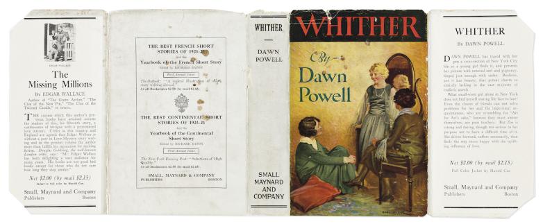 Dawn Powell, Whither, first edition with unrestored pictorial dust jacket, 1925. Estimate $6,000-9,000