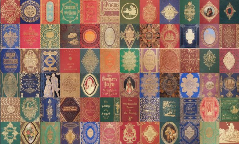* Dalziel’s Illustrated Goldsmith by Oliver Goldsmith with one hundred pictures drawn by G.J. Pinwell, engraved by the Brothers Dalziel. London, Ward, Lock and Tyler, 1865. Blue cloth stamped in gilt, black and blind.
