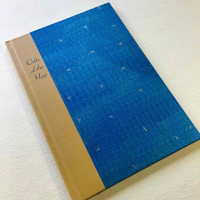 The book is printed on some of the last available Zerkall paper, hand set in Baskerville types and Rudolf Koch’s Locarno italic for titling. The hardback book is hand bound and wrapped in gold and blue paste paper made for the edition of 130, with 15 sets available to binders.