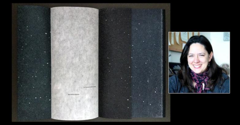 The MCBA Prize was founded in 2009 as the first honor to recognize contemporary book art from across the field and around the world. Along with a cash prize of $2,000, Langworthy also received an essay written by Betty Bright which examines the beauty, skillfulness, and relevance of her work. In the essay, Bright praises Langworthy’s book for illuminating a painful analogy between close-seeming (yet ever distant) stars and human relationships.