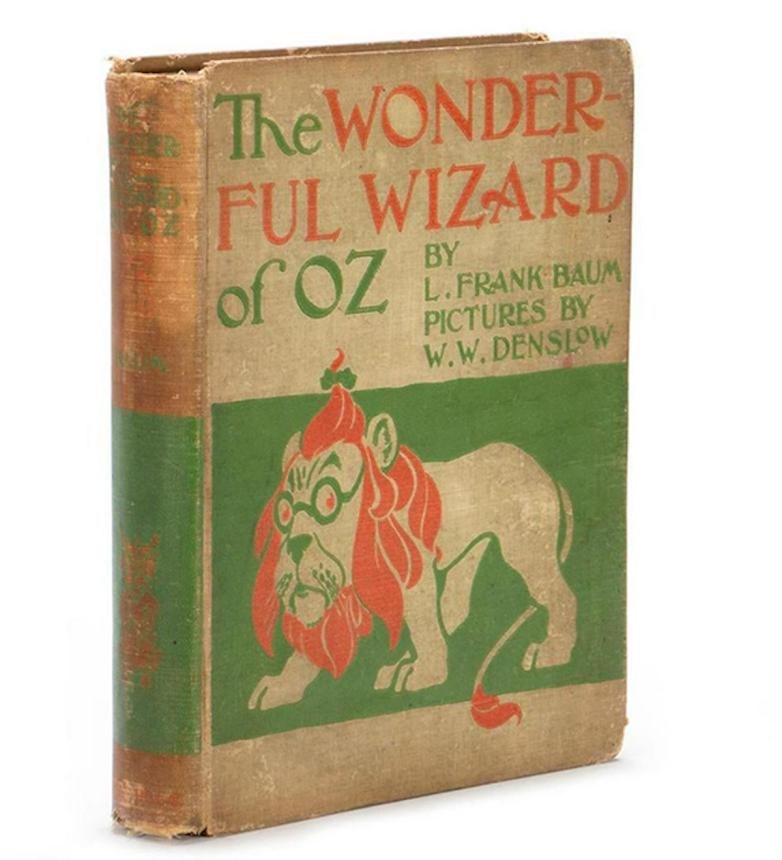 First edition of The Wonderful Wizard of Oz by L. Frank Baum, illustrated by W. W. Denslow. Estimate: $3,000-5,000