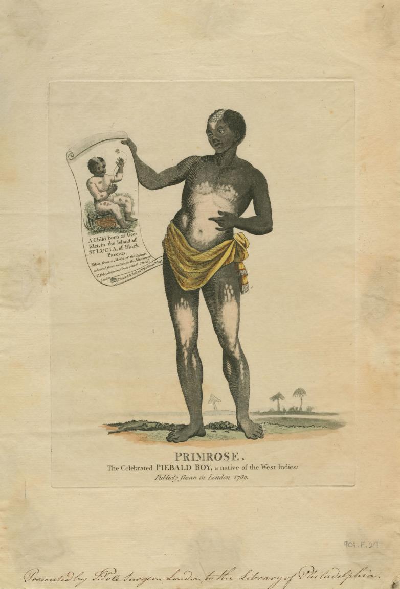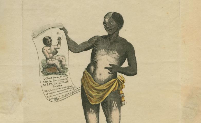 A rare circa-1789 print of an enslaved teen with vitiligo who was objectified as a spectacle of curiosity.
