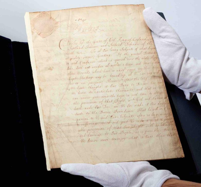 One of only two surviving copies of this historic royal document The Declaration of Breda