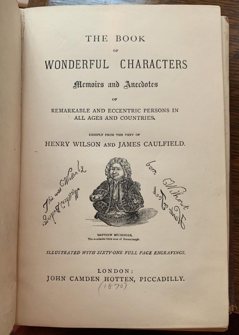 Hartzman's copy of The Book of Wonderful Characters (1870).