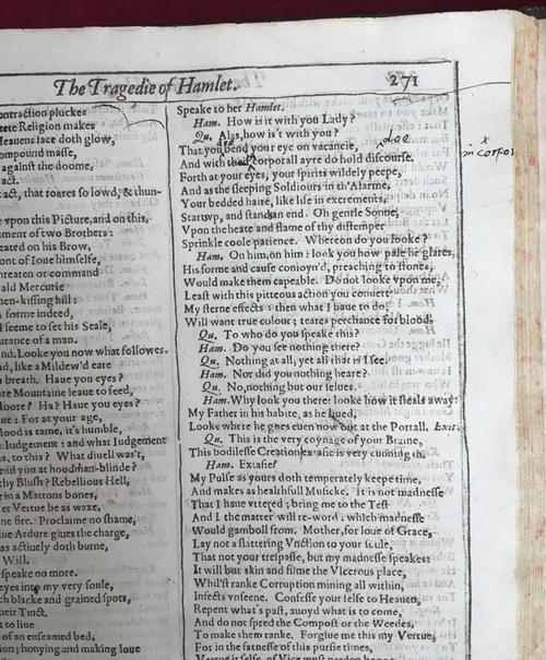Milton's notes on Hamlet from Shakespeare's First Folio (1623).