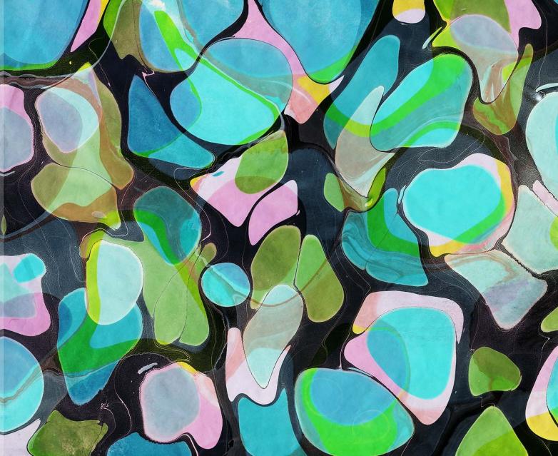 Visiting masters of marbling Regina and Dan St. John will give an artist talk at the Mimic closing reception on October 3, and MCBA will host a series of master marbling workshops led by Regina and Dan this fall. Both Chena River Marblers based in Massachusetts, Regina and Dan specialize in book edge-marbling, miniature marbling, custom marbled papers, and teaching marbling workshops around the country. Connecting the local community to national masters of the form, MCBA's marbled-themed exhibition and educational programs aim to engage, inspire, and focus attention on contemporary applications of this vibrant traditional craft.