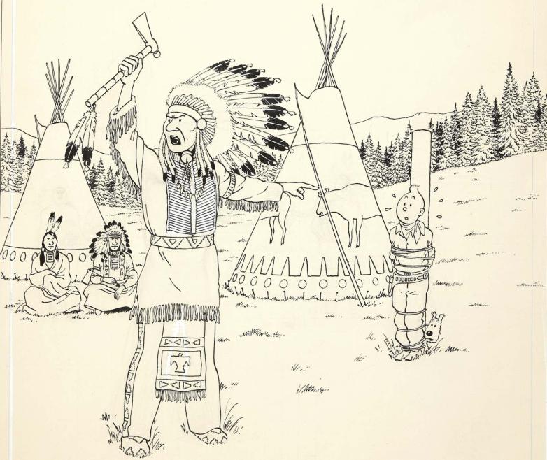 Artcurial has auctioned Hergé’s original drawing for the 1942 cover of the album Tintin in America, which was then used in 1946 for the first colour edition of the album.