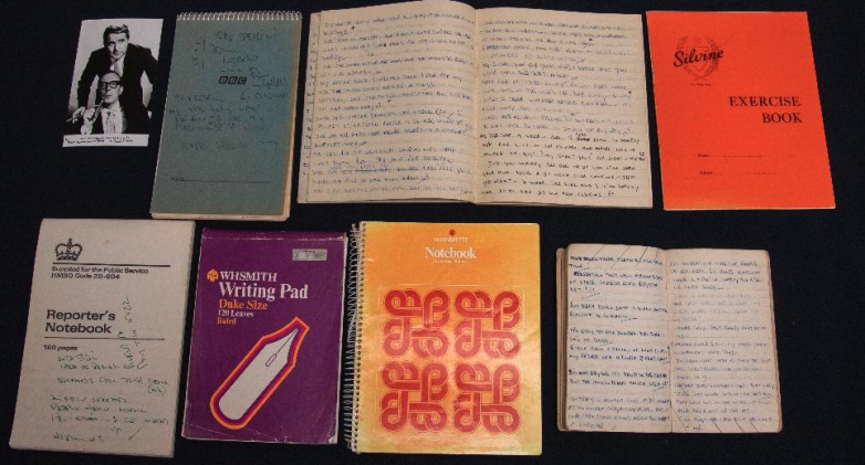 A group of seven notebooks containing Eric Morecambe's manuscript joke ideas, offered as part of his collection at Hansons this week.
