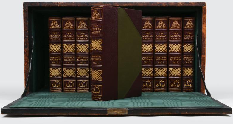 A handsome library set of Richard Burton’s Arabian Nights in twelve volumes, complete with 71 color illustrations and housed in the original box.
