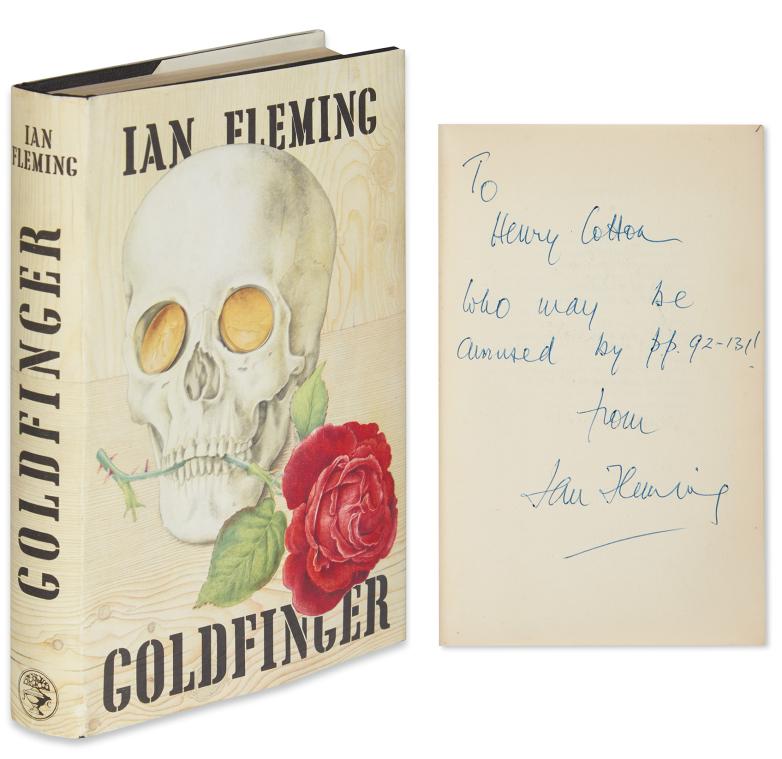 Ian Fleming, Goldfinger, first edition, inscribed to Sir Henry Cotton, MBE, London, 1959. Sold for $25,000.