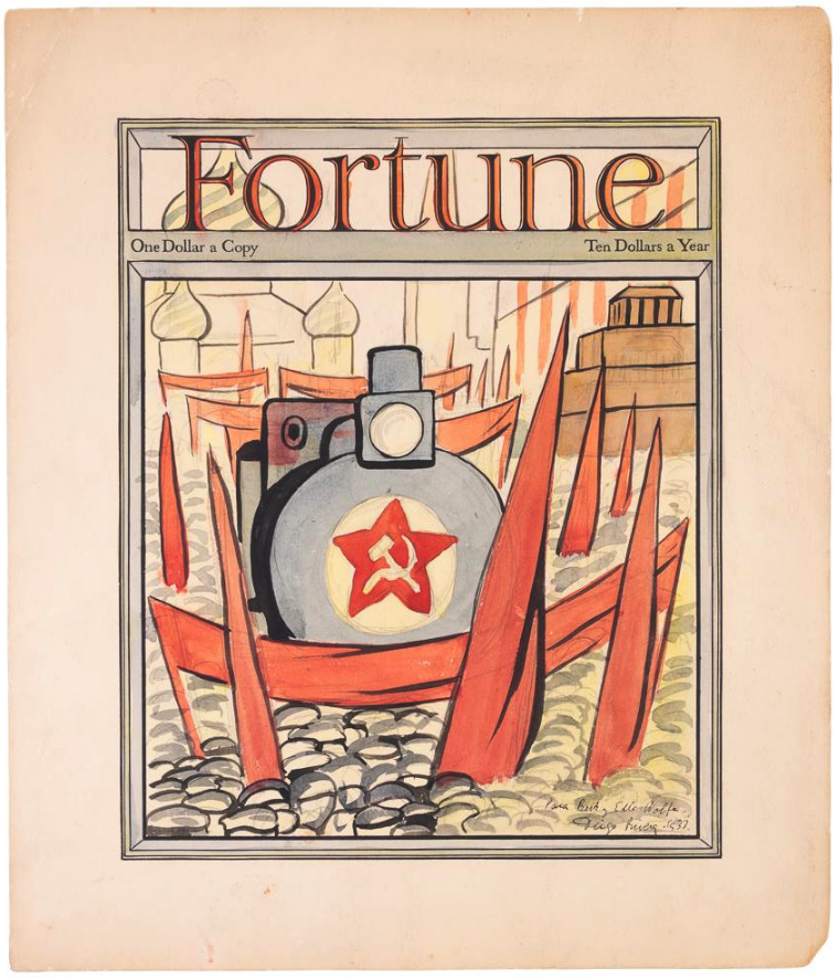 Diego Rivera's watercolor design for the March 1932 issue of Fortune, inscribed by Rivera to founders of the American Communist Party.