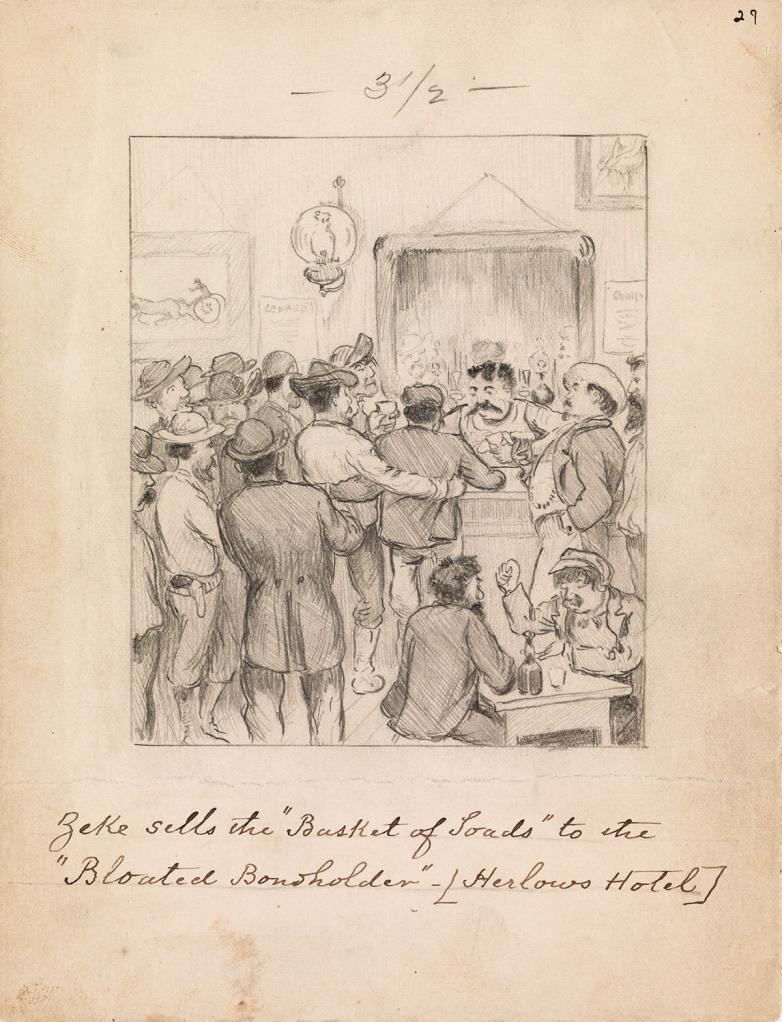 Also on Thursday at Swann Galleries, 387 lots of Printed & Manuscript Americana. A June 4, 1776 London impression of Bernard Romans' "An Exact View of the Late Battle at Charlestown, June 17th, 1775" rates the top estimate at $40,000–60,000. A first edition of the Book of Mormon (1830) with what are described as "early underlinings and marginal notes" is estimated at $30,000–40,000. This copy is noted as having been identified just last year in Wolfeboro, New Hampshire: note that the front board has been replaced. William Sydney Porter's illustrations for a never-published mining memoir by Joseph T. Dixon are estimated at $15,000–25,000.