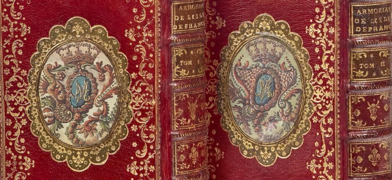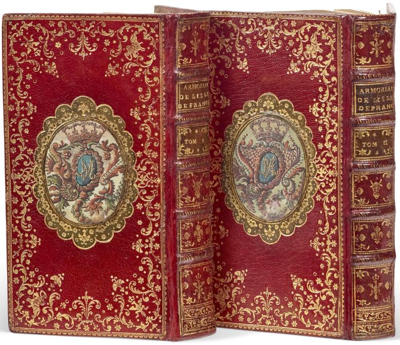Ornate armorial binding on Pierre-Paul Dubuisson's Armorial des principales maisons et familles du royaume (1757), offered at Christie's Paris this week.