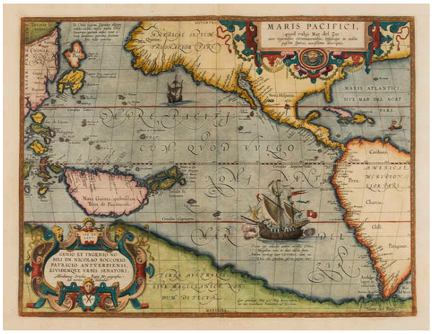 1589 Ortelius map of the Pacific, offered at Forum Auctions this week.