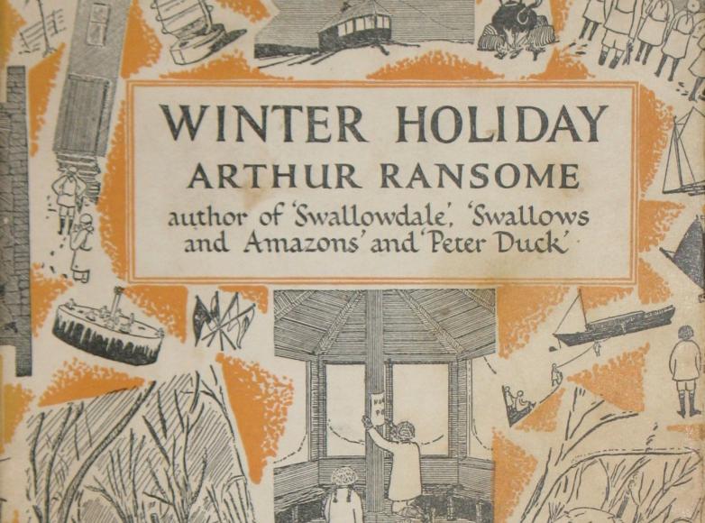 Detail of the pictorial dust jacket for Arthur Ransome's Winter Holiday (1933).