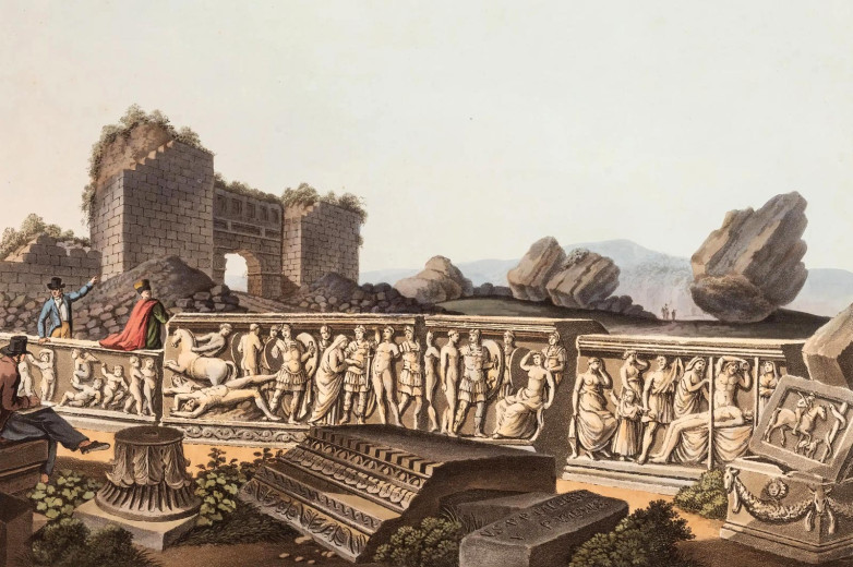 Plate from Luigi Mayer's Selection of the Most Interesting of Sir Robert Ainslie's celebrated Collection of Views in Turkey (1811) showing "Fragments at Ephesus," offered at Forum Auctions this week.