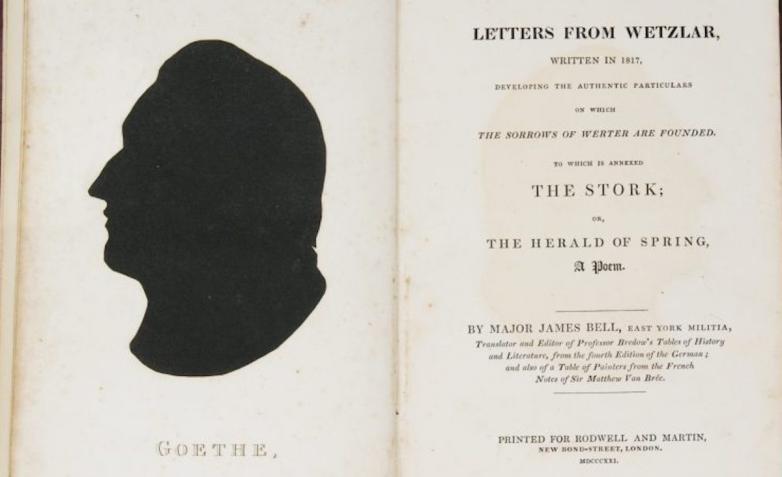 An inscribed first edition of Letters from Wetzlar (1821), a novel about Goethe written by Major James Bell, will be offered by bookseller Simon Beattie at the Stuttgart Fair.