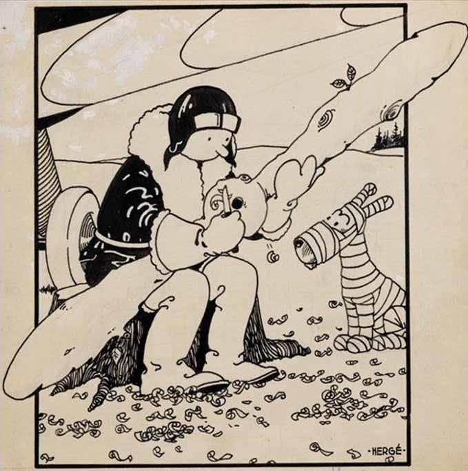 The remarkable discovery is one of the few known privately owned cover illustrations signed by Hergé, and also the oldest. In addition, the 1930 artwork also is the first cover image featuring both Tintin and Snowy, his faithful canine companion.