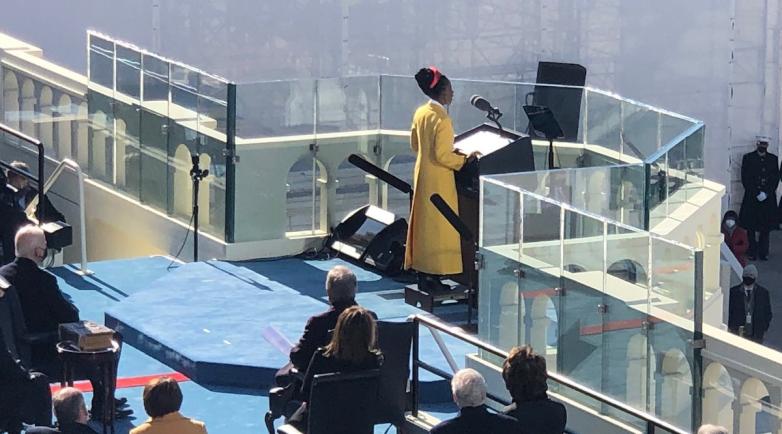 Gorman wrote "In This Place: An American Lyric" for a September 2017 performance at the Library of Congress, where First Lady Dr. Jill Biden and Librarian of Congress Carla D. Hayden were in attendance. Hayden wrote this week, “I would like to congratulate Amanda on another amazing performance and say how delighted I am that her appearance on the Coolidge Auditorium stage in 2017 led her to the U.S. Capitol yesterday.”