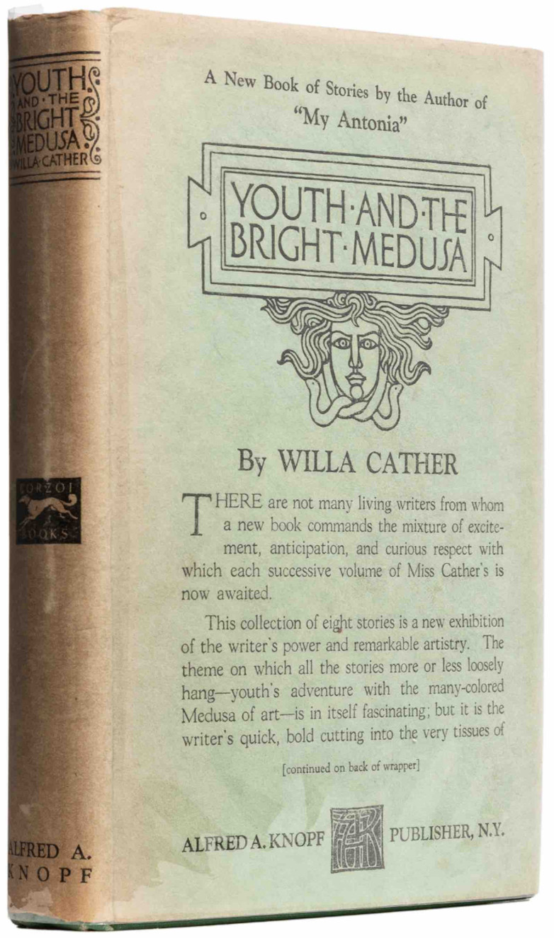 Exceeding expectations: Willa Cather's Youth and the Bright Medusa (New York: Alfred A. Knopf, 1920). First edition in the rare dust jacket.
