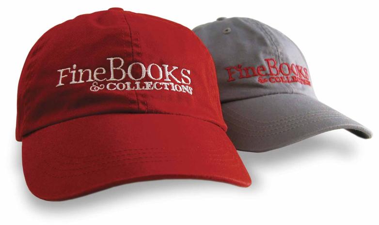 It’s a more colorful holiday this year with Fine Books hats in more colors. Choose from white hat with red embroidery; red hat with white lettering; light gray, red lettering; navy with light blue, plus other options. Hat is adjustable with a metal belt-buckle closure. $16.95