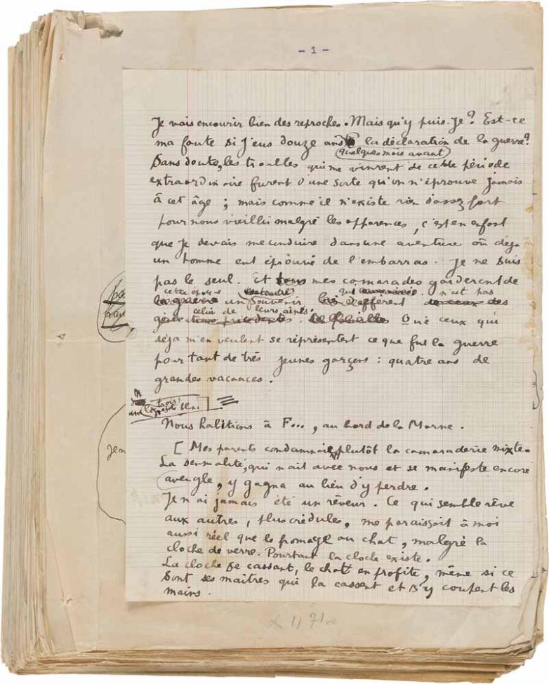Raymond Radiguet. Le Diable au Corps. Corrected Typescript and Manuscript. Circa 1922. Estimate: $15,000 and up.