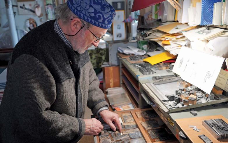 His workshop is in Osnago, a tiny Italian town in the countryside between Milan and Lake Como. Pulcinoelefante’s eclectic catalogue includes poems from various authors, both famous and less known, short texts, and aphorisms—including the ones Casiraghy has been writing for 50 years. He has also crafted books for many of Italy’s leading authors and artists.