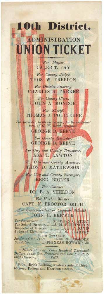 Administration Union Ticket, Sacramento, California, 1851.