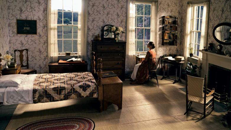 For Dickinson’s lead decorator, Marina Parker, who left no stone unturned when sourcing, acquiring, and fabricating the set, drawing attention to craftspeople who are still making things the ‘old-fashioned’ way is also important. “It is incredibly gratifying that the effort we put into the details is being recognized and that so much of the set dressing, including nineteenth-century furniture, is being folded into the Emily Dickinson Museum to furnish her house,” Parker said. The show’s punch list was exhaustive: “Carpets woven by punch cards on jacquard looms. Yarn dyed. Wallpaper block printed. Glass hand blown.” Curators at various museums pointed her in the direction of artisans who use nineteenth-century techniques. For example, “Family Heirloom Weavers in Red Lion, Pennsylvania, have been weaving for generations,” Parker said. “Their yarn was dyed by a company done in by Covid.” Other vendors included Adelphi Paper Hangings in Sharon Springs, New York; Amherst’s own Cooper Lace; Antique Stove Hospital in Little Compton, Rhode Island; and David Rose Antiques in Upton, Massachusetts.