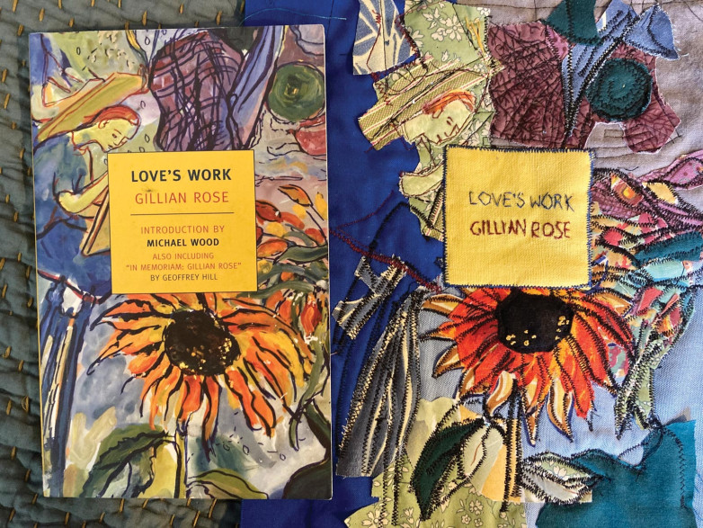 “My favorite covers are those for Gillian Rose’s Love’s Work and Marion Gibson’s The Witches of St. Osyth, the former for the joyous, colorful exuberance and the latter for the vibrancy of the pink juxtaposed against the dark grays,” she said. “I fear that I might start to select books I will read in the future by the look of the cover and that I am more inclined to read books now that have attractive or challenging cover designs. I have also tried to think about each book as I embroider it, a kind of extended process of reflection, sewing myself back into the stories.”