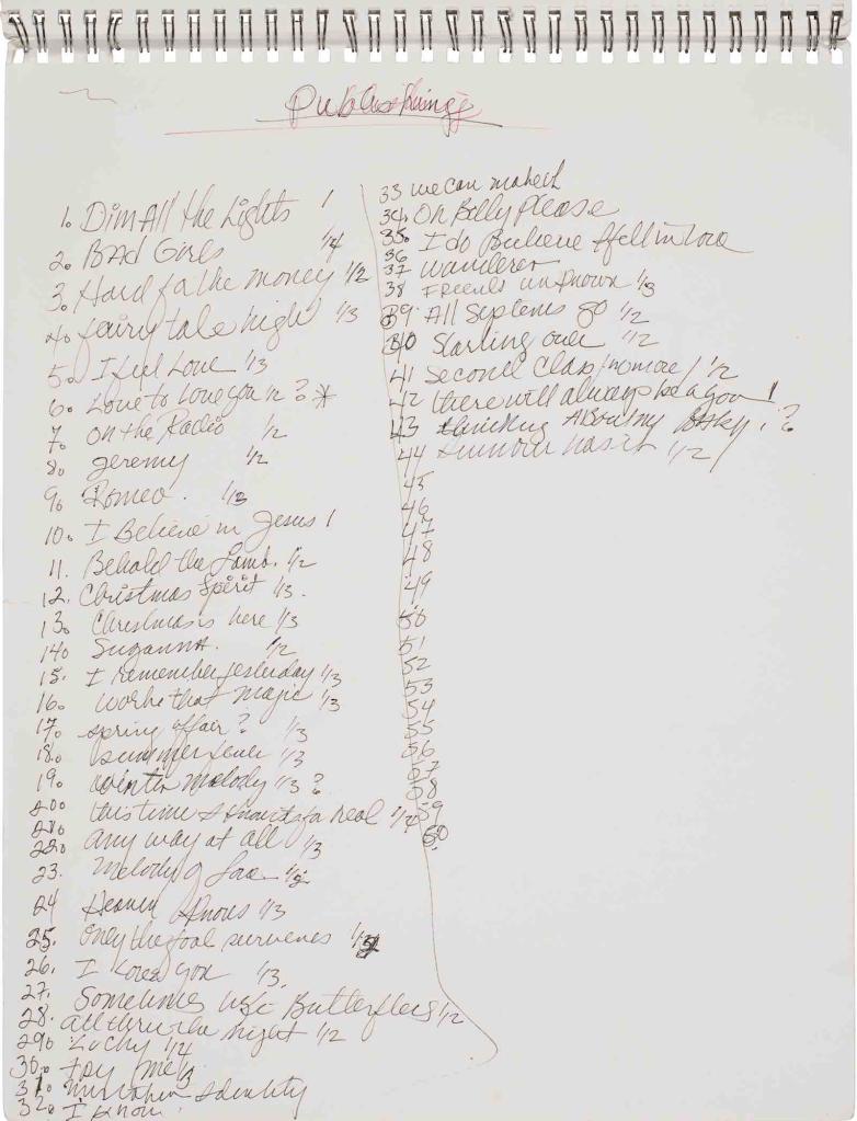 The Christie’s sale of The Collection of Donna Summer included examples of autographed handwritten lyrics.