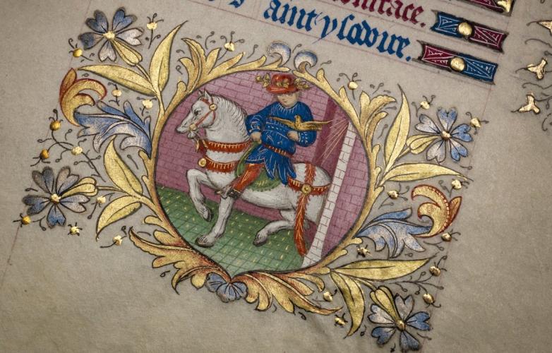 Detail from Master of the Paris Bartholomeus Anglicus Book of Hours, illuminated manuscript on vellum, Anjou or Le Mans, c.1440s. Sold for $3,630,000