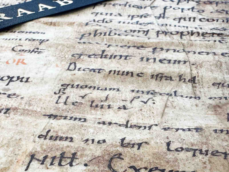 Raab discovered the musical notes on a vellum manuscript leaf from an early Latin Sacramentary, a liturgical book used during Mass, dating to the mid-to-late 800s. The penstrokes and dots above the word “[A]lleluja” in a choral refrain to be sung by the congregation, which were overlooked or misunderstood by previous modern owners, prompted Raab to acquire the leaf and undertake research into their origin and use.