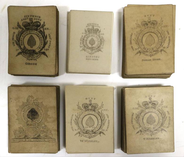 Going for 10 times the pre-sale low estimate, the cards, which were sold in group lots, dated from the 18th and 19th centuries. The top lot of the collection comprised six packs of 18th century cards and sold for £5,000.