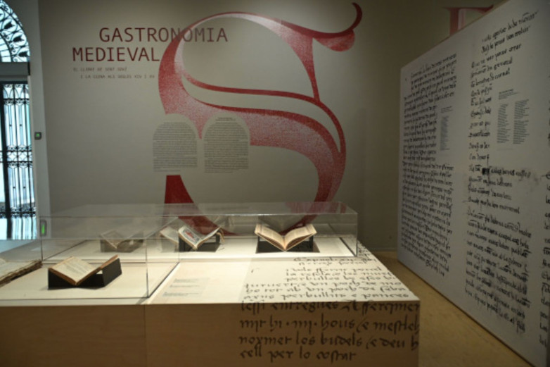 The exhibition - Gastronomía medieval. El Llibre de Sent Soví i la cuina als segles XIV y XV - runs until May 25 and is divided into three sections focusing on recipe books and ingredients, medieval stoves and the kitchen as a working space, and eating together. In addition to the Sent Soví text, the exhibition features banqueting accounts, cookers, mortars, trivets, gilded ceramic plates, cooking utensils, cutlery, jugs, glasses, and goblets.